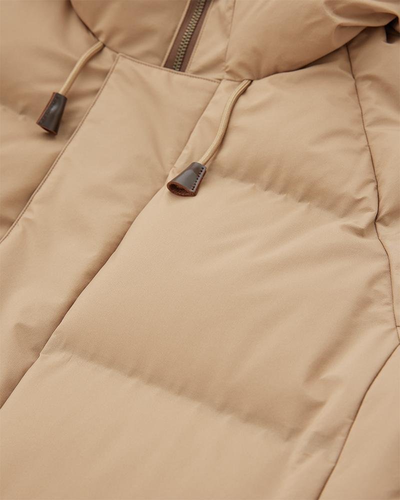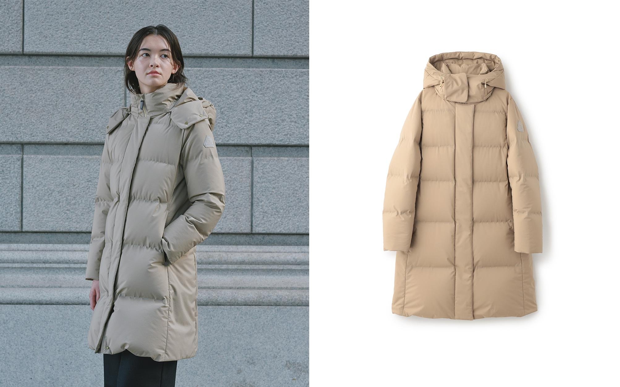 冬の装いにアクティブさと気品を添えるロングダウン。リサイクルナイロンを高密度に織り上げた三層構造素材は、透湿防水性に優れ、軽やかさと上質さを両立しています。青森産の高級羽毛を贅沢に充填し、シームレスな仕立てがロング丈ならではの端麗なラインを造形。ダウンでありながらスポーティ一辺倒に偏らず、比翼仕立てのフロントや着脱可能なフード、逆開仕様のエクセラファスナーが、品格ある佇まいを演出します。大人の冬にふさわしいエレガンスと、確かな機能性を備えた一着です。