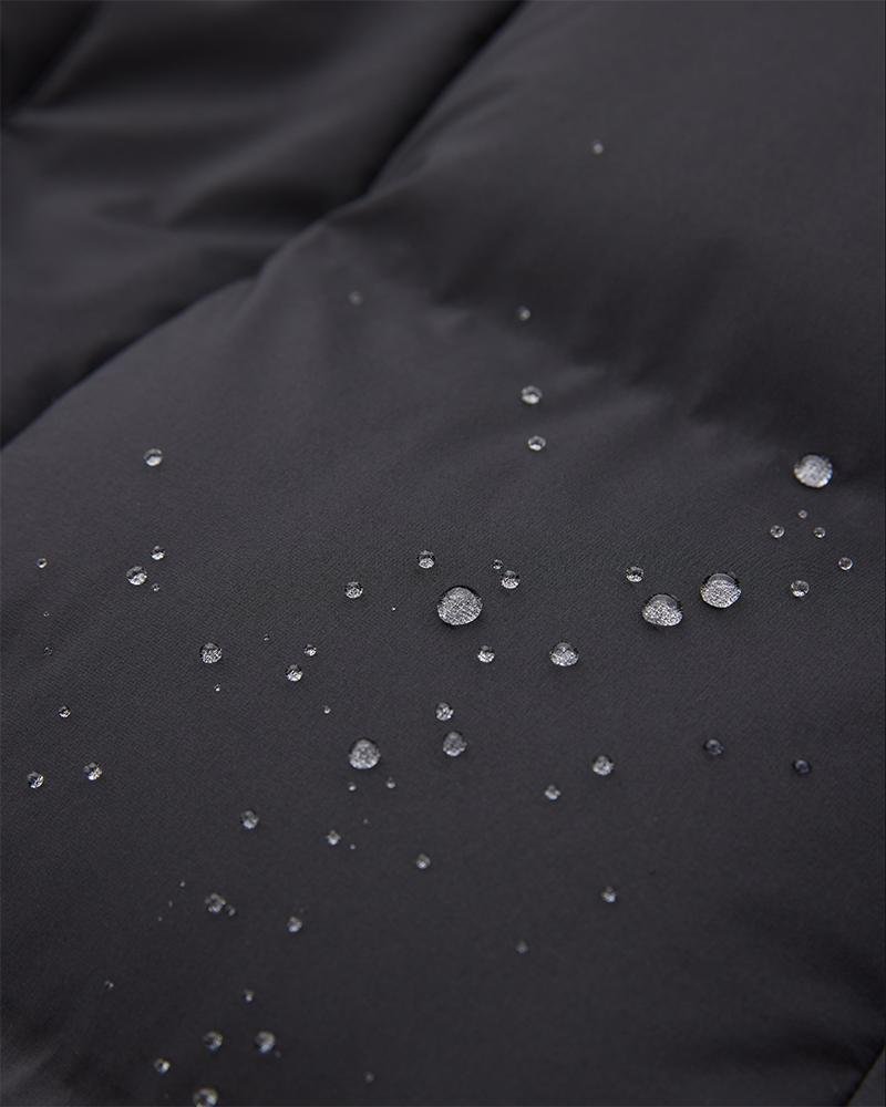 縫製部分から水が染み込まないようミシンの縫い目のない「熱圧着」という無縫製技術によりダウンを仕切っています。これにより高い防水性を確保するだけでなく、ダウン抜けを防ぐことができます。