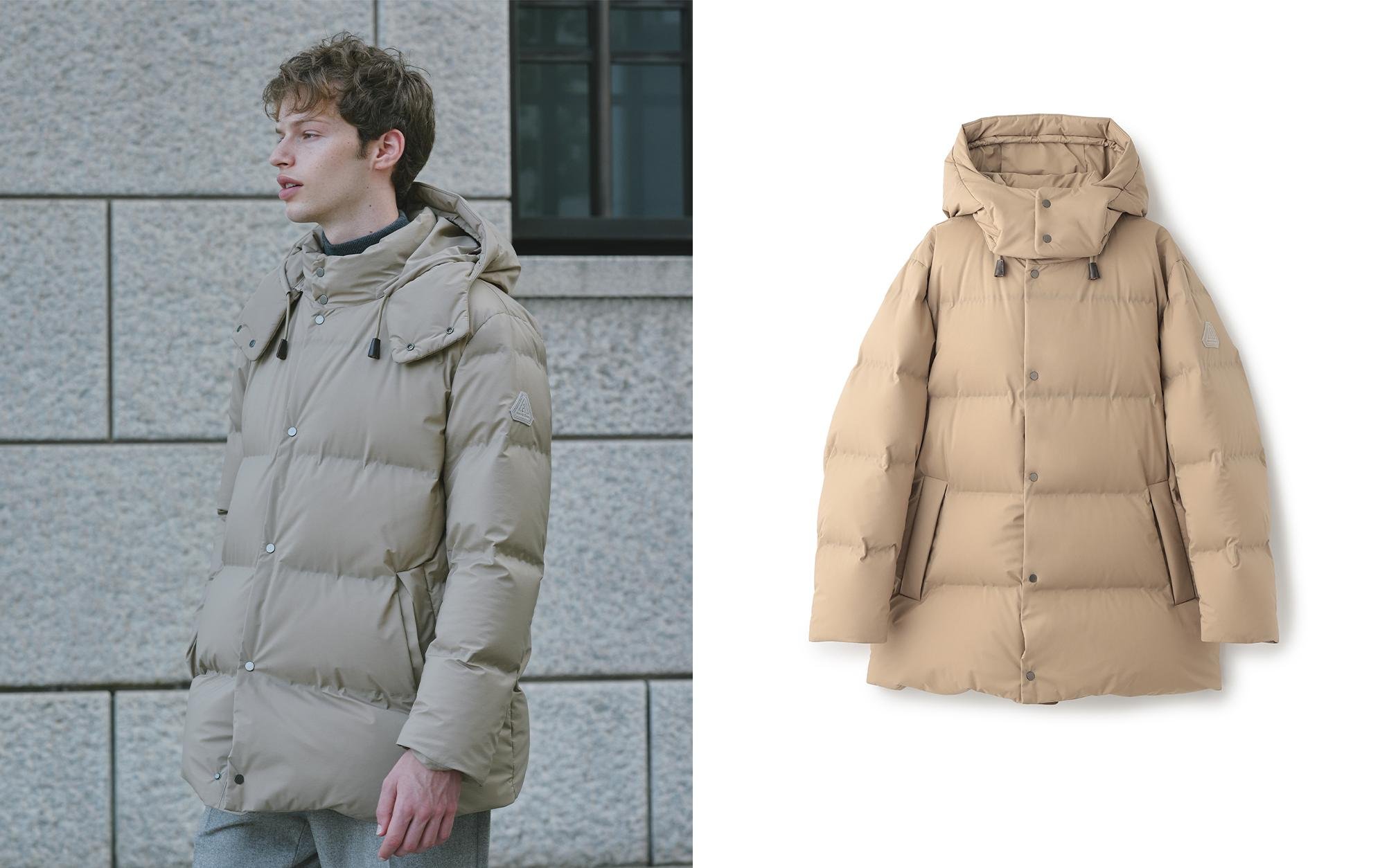 三陽商会80年の技術を結集した『青森ダウン』の新モデル。表地を刷新し、従来よりもさらにソフトで軽量なモデルへとアップデートしました。マットな質感にハリとツヤを兼ね備えた透湿防水素材が、都会的なムードを演出。シームレス構築による高い防水性や、着脱可能な立体フード、滑らかなエクセラファスナーなど、実用的なディテールも健在です。深みのある漆黒カラーに加え、今季は上品なライトベージュもラインナップしています。