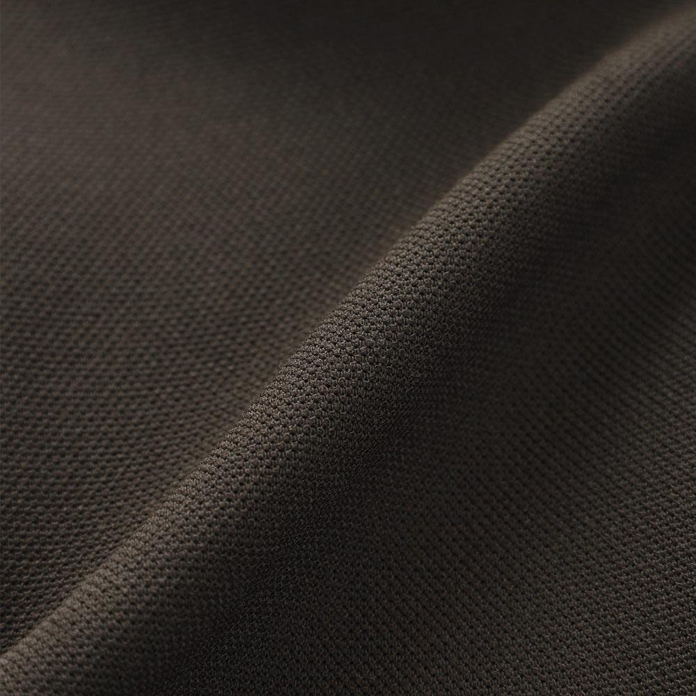 合繊や機能素材の織りに強みのある北陸で織り上げたカラミ織の生地を、毛織物産地・尾州で仕上げ加工を行うことで、生地にふくらみや柔らかさ、エアリーなタッチを付加しました。異なる産地の技術を掛け合わせることで、機能素材でありながら天然素材のような品格ある仕上がりを実現しています。