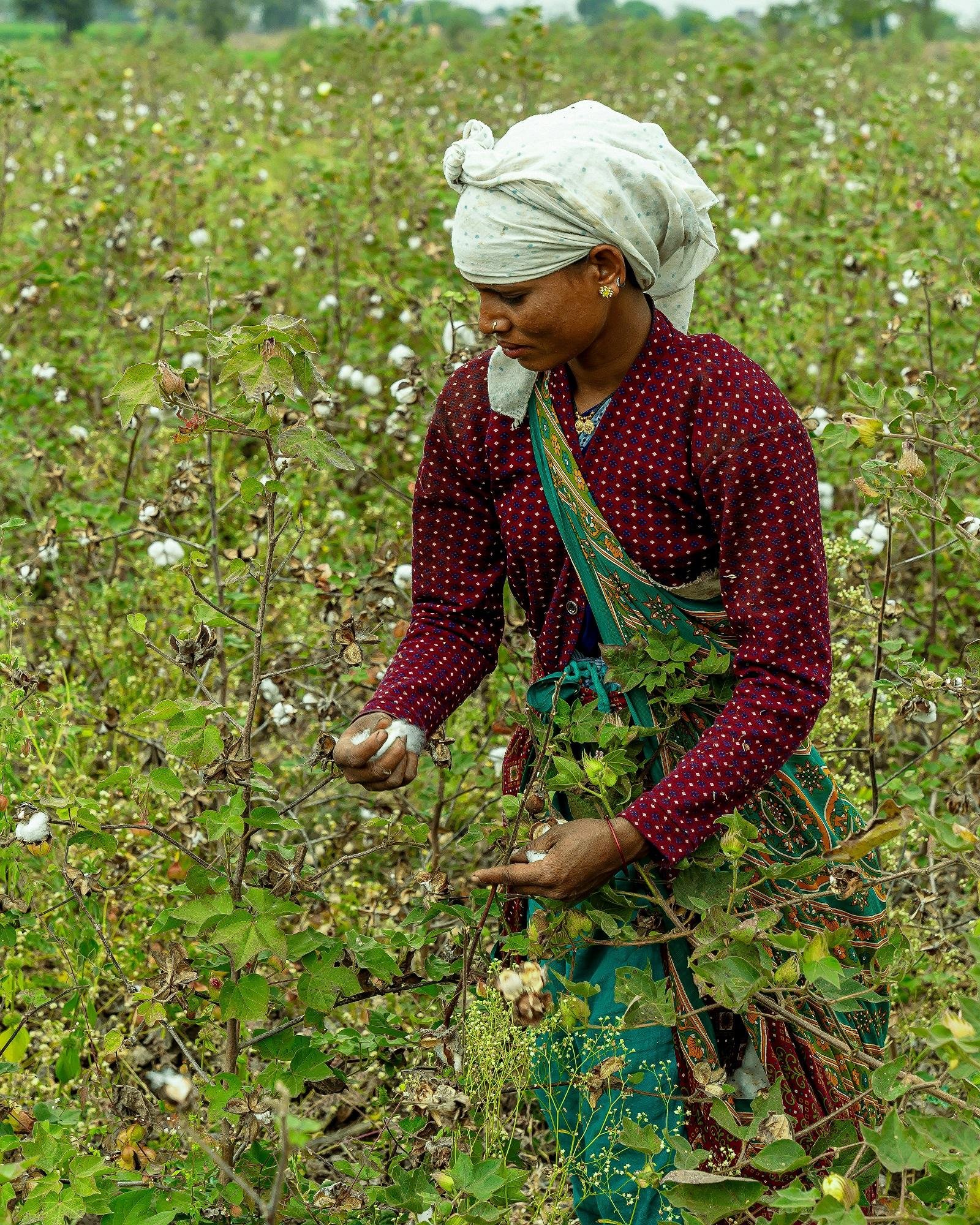 本プロジェクトは、インド有数の綿花生産地であるグジャラート州を中心に展開されています。スペイン「ECOALF」は、再生型農業を実践する農業コミュニティと長期的なパートナーシップを構築。単なる原料の調達にとどまらず、農家の技術支援と経済的安定を重視した関係づくりを基盤としています。当初は少人数の研修を受けた農家グループから始まったこの取り組みは、現在では複数の村にまたがる数千人の農家からなるネットワークへと成長しました。
