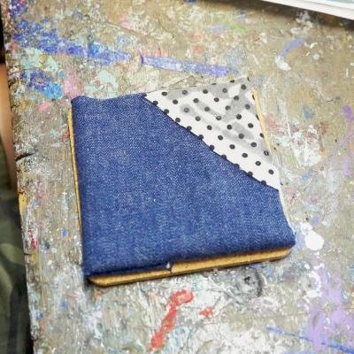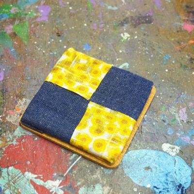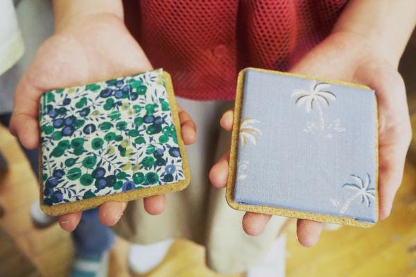 様々な残布のなかからお気に入りのものを選んでコースターをつくります。
